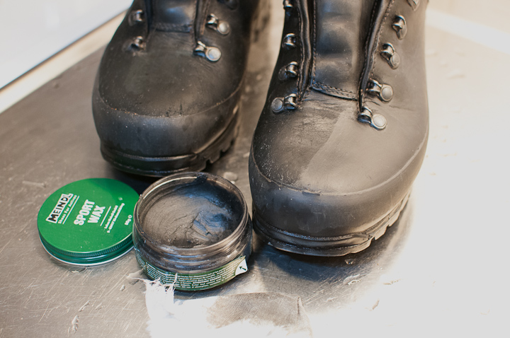 När kängorna fortfarande är lite fuktiga från rengöringen är det dags att vaxa de. Varje kängtillverkare har egna skovårdsprodukter. Meindl har sitt SportsWax och Lundhags har sitt Lädersmorning till exempel. I grunden är det samma klet men genom att använda det som kängtillverkaren rekommenderar vet man att det är optimerat för just din känga. Viktigt är dock att aldrig använda fett till sina kängor. Fettet tränger ner för djupt i lädret och blockerar porerna. Vilket resulterar i att lädret tappar sin naturliga förmåga att andas.